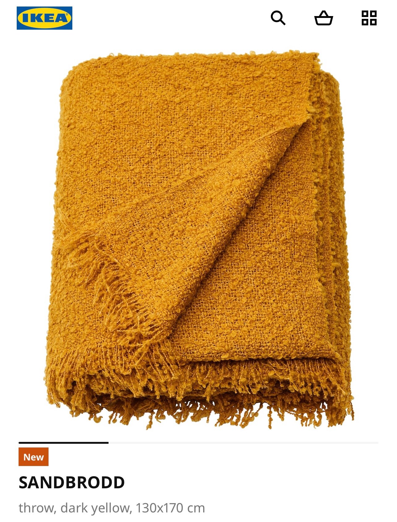 10 цен на Плед IKEA SANDBRODD, темно-желтый, 130x170 см