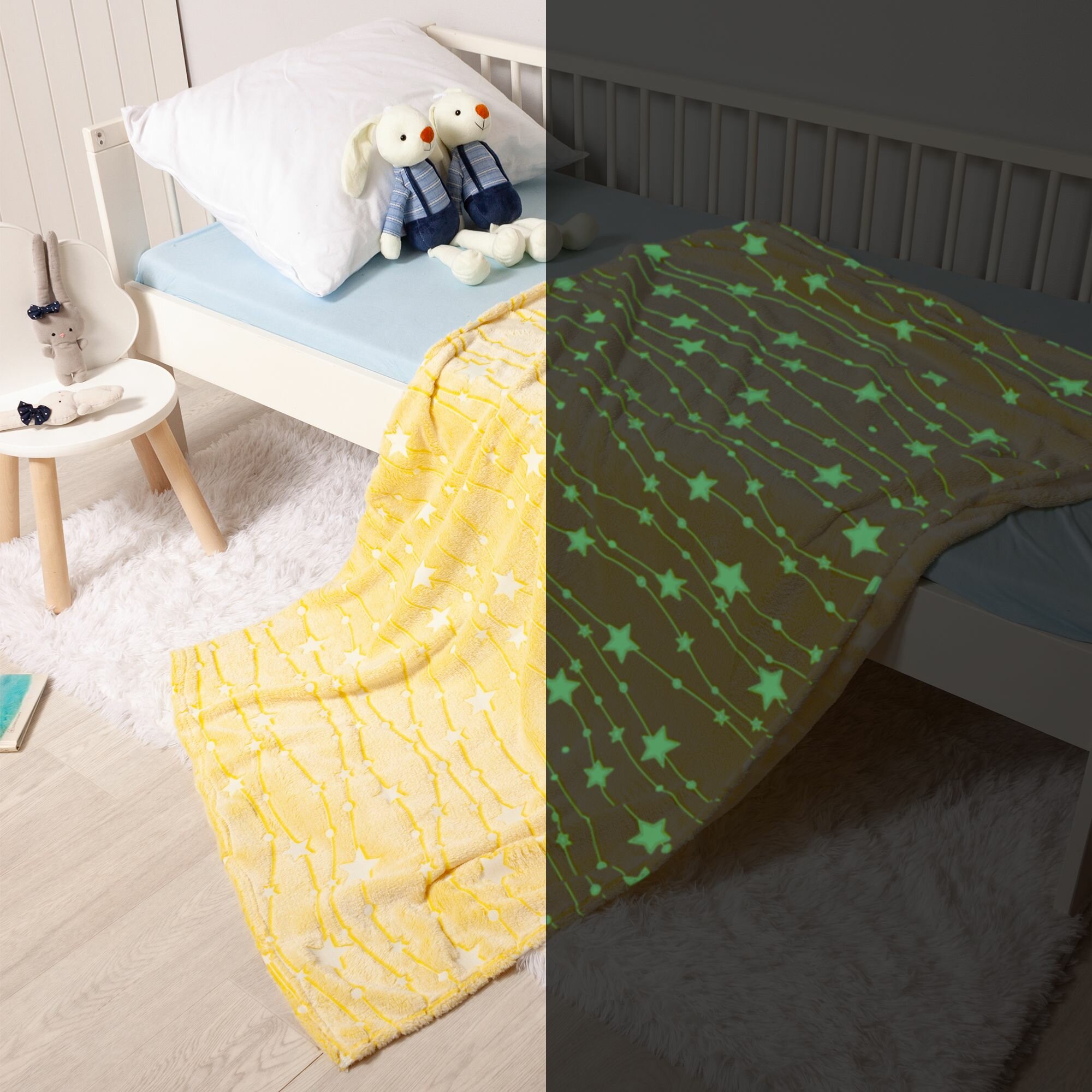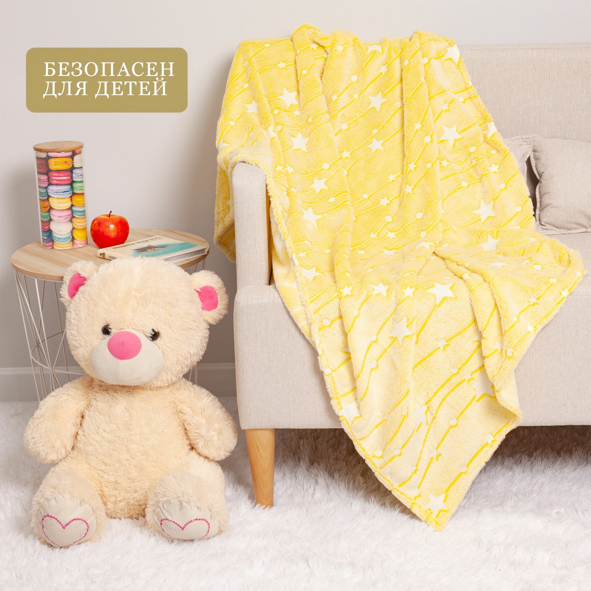 Плед велсофт детский 100х150 см (светится в темноте) Стелла, звезды / желтый информация: