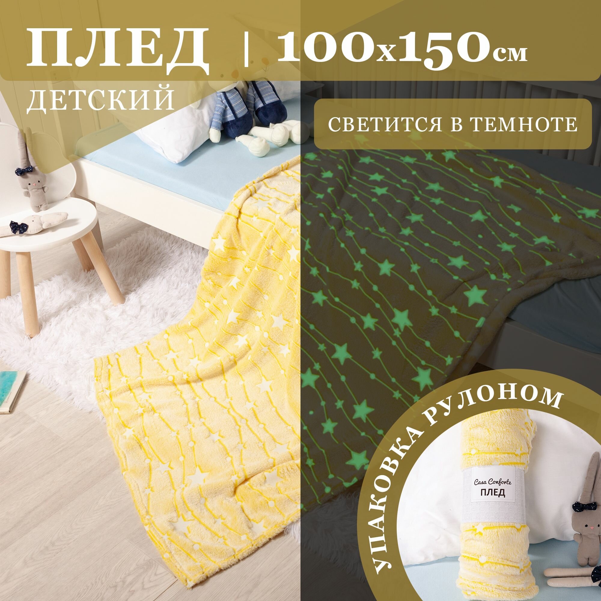 Отзывы на Плед велсофт детский 100х150 см (светится в темноте) Стелла, звезды / желтый