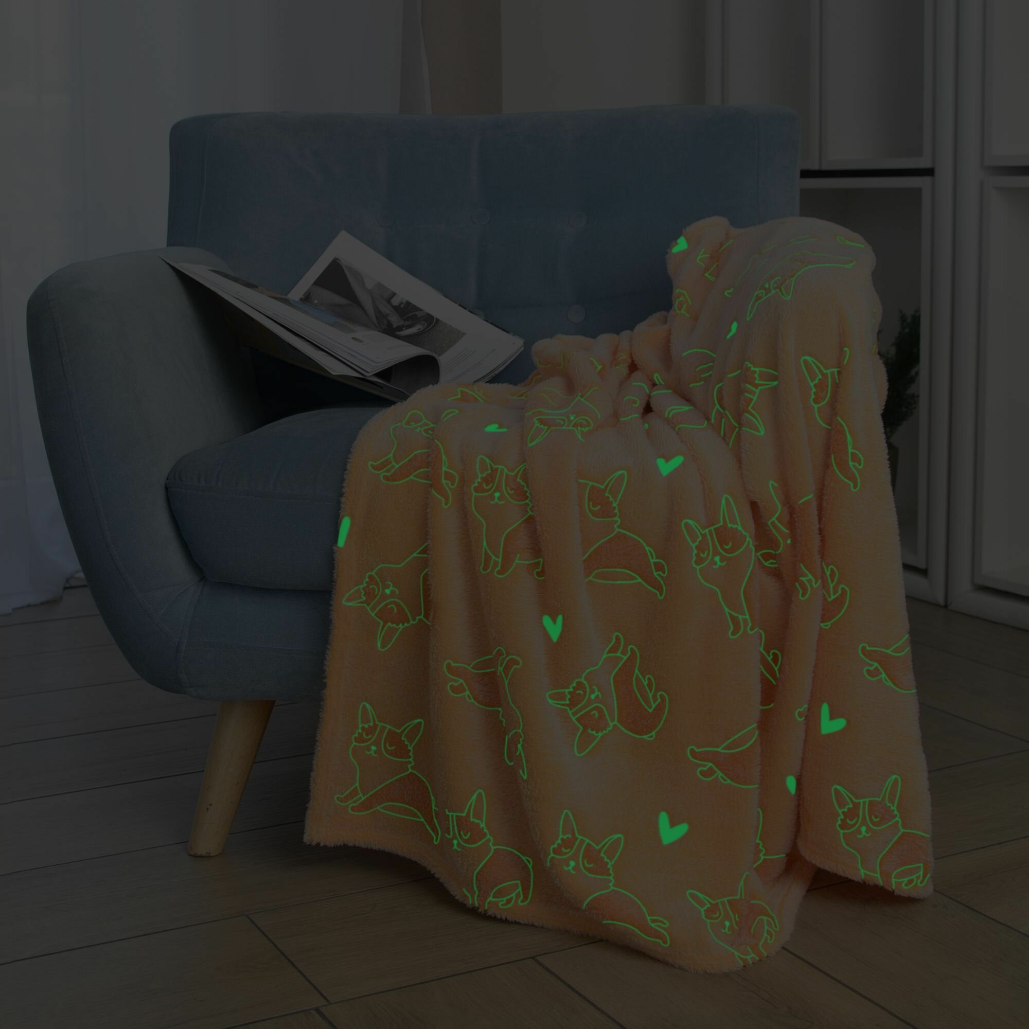Плед велсофт детский 100х150 см (светится в темноте) Стелла, собачки/ морковный информация:
