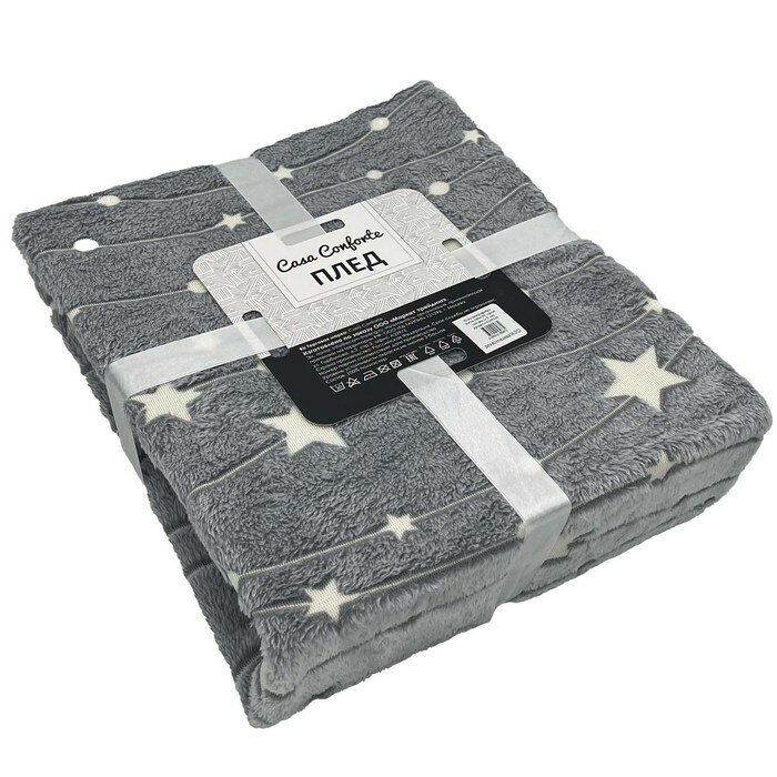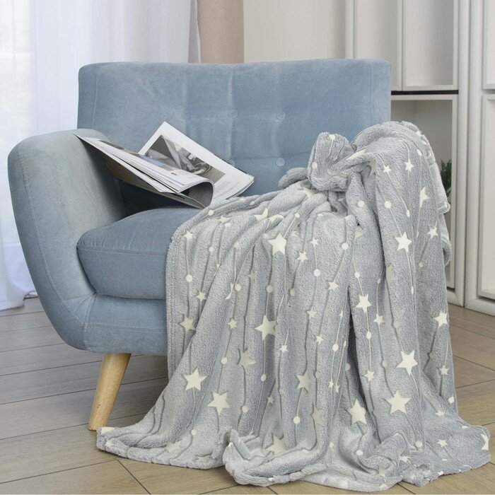 Плед велсофт детский 100х150 см (светится в темноте) Стелла, звезды / серый информация: