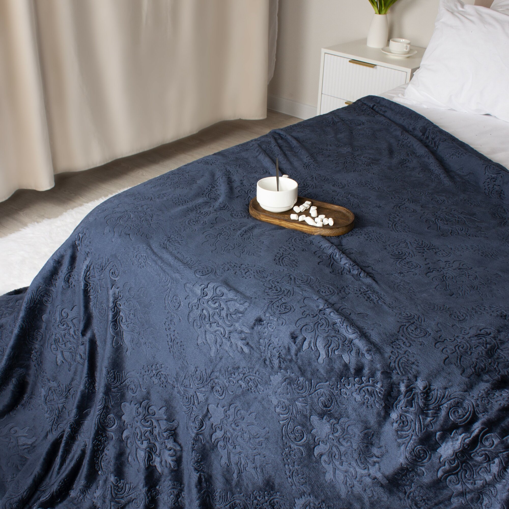 Отзывы на Плед велсофт фактурный 200х220 см, покрывало евро, Casa Conforte Палаццо, однотонный темно-синий