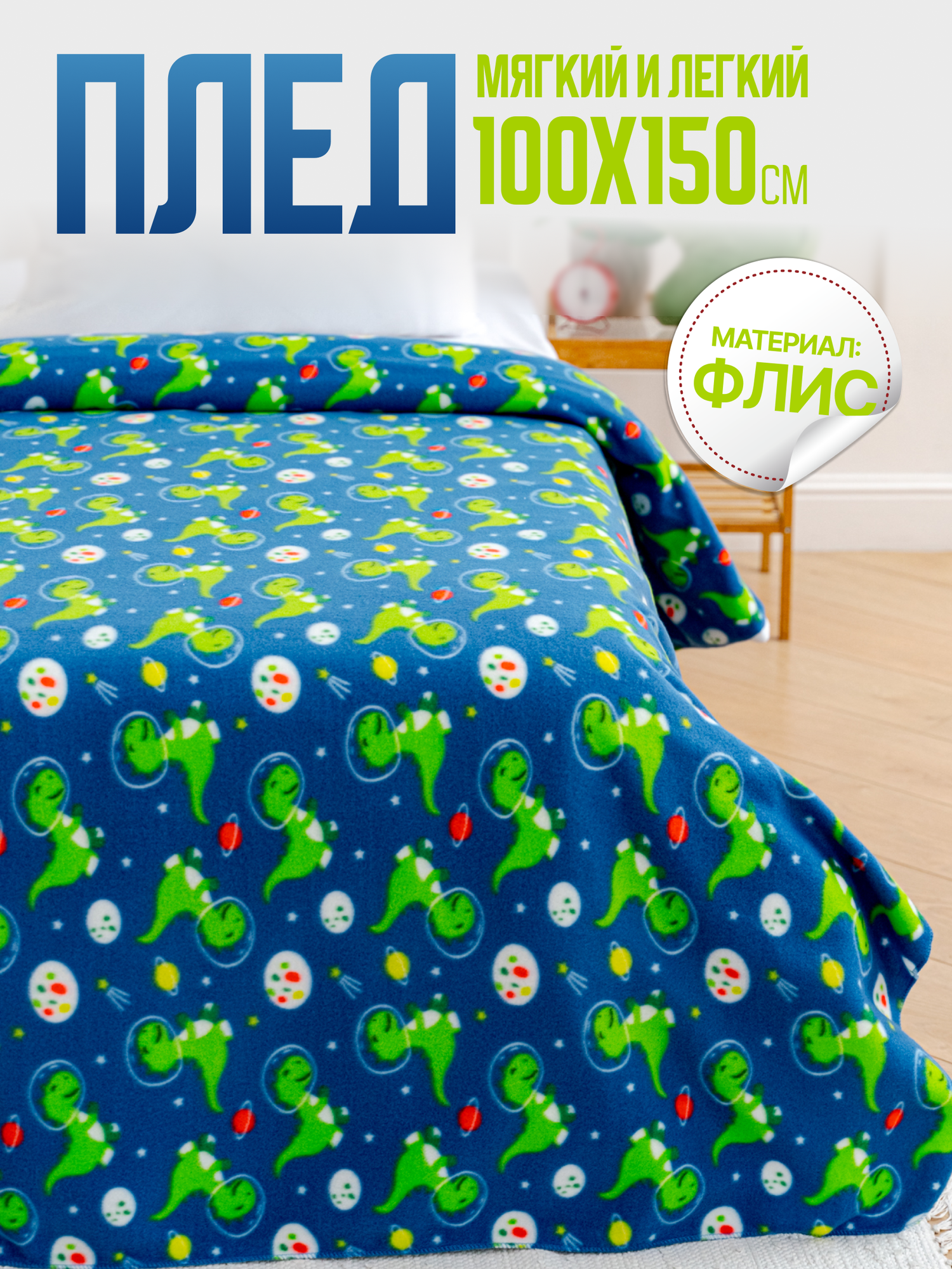 10 цен на Плед 100х150 флисовый Павлинка Космодинозавры