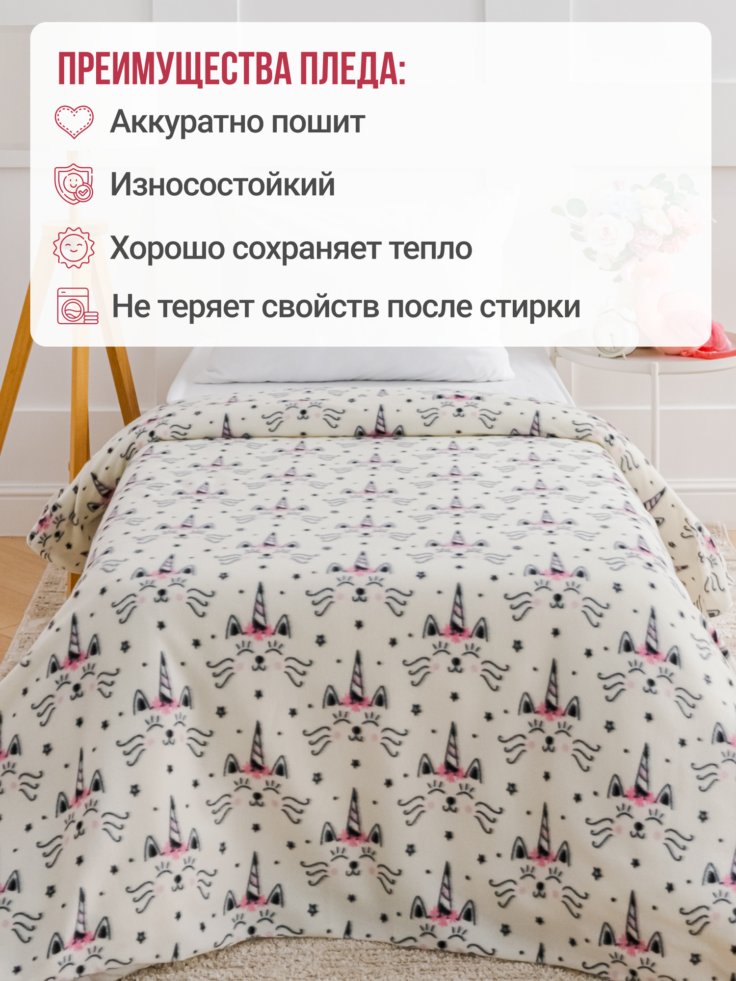 Отзывы на Плед Павлинка «Кот-единорог», 150х200см, флис 135 г/м, полиэстер