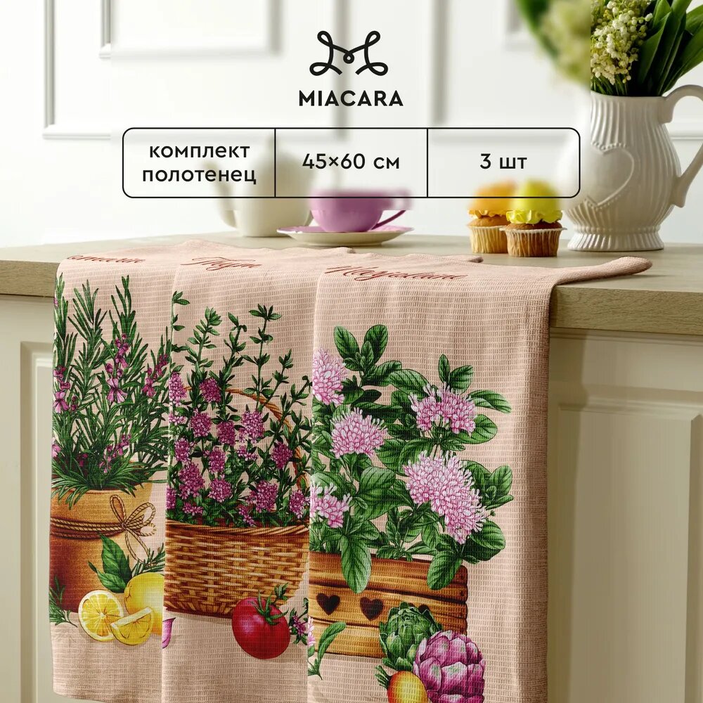 10 цен на Набор вафельных полотенец 45х60 (3 шт.) "Mia Cara" рис 30663-1 Condimento