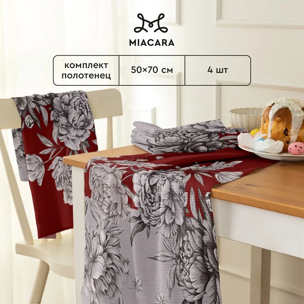 Набор вафельных полотенец 50х70 (4 шт.) "Mia Cara" рис 30567-1 Гранаты 365 ₽