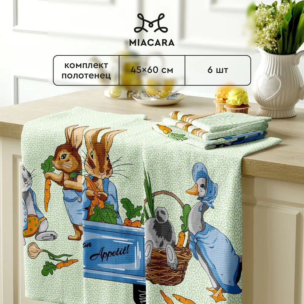 Комплект вафельных полотенец 45х60 (6 шт.) "Mia Cara" рис 30544-1 Rabbit time 380 ₽