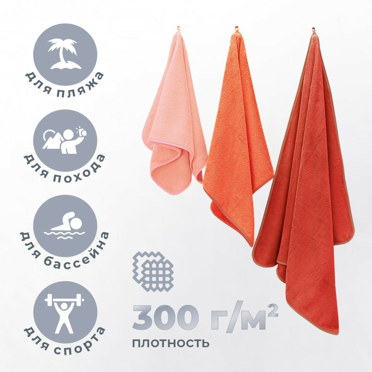 Набор полотенец из микрофибры Сванк 35*75 +50*90+ 70*140 см серый/Быстросохнущее пляжное полотенце для Тренировок 900 ₽