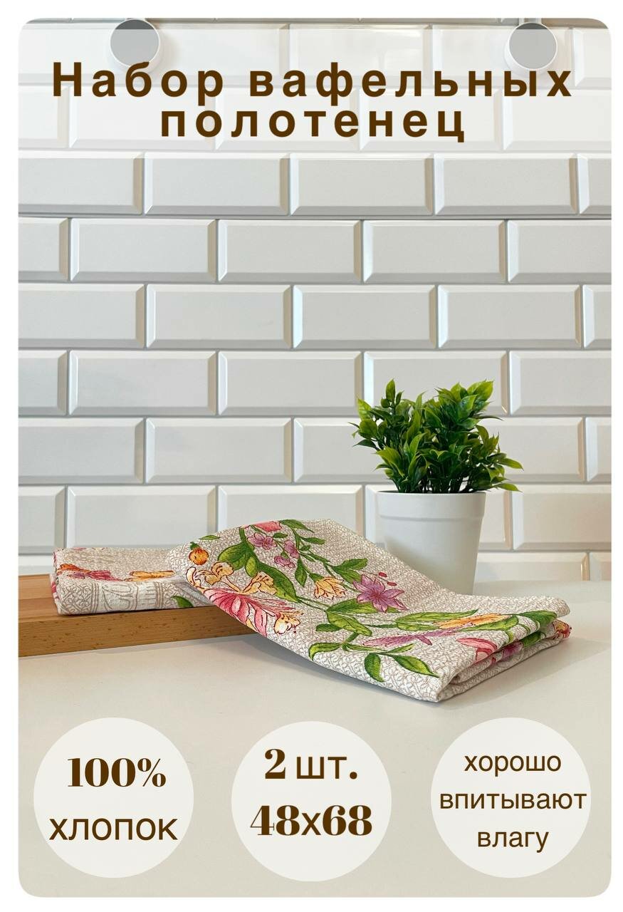 10 цен на Набор кухонных полотенец 2 шт. 48x68 вафельные "Весенние цветы"