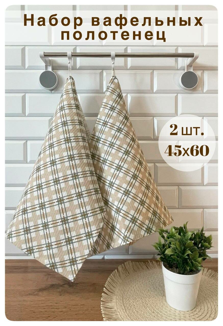10 цен на Набор кухонных полотенец 2 шт. 45x60 вафельные "Клетка бежевая"