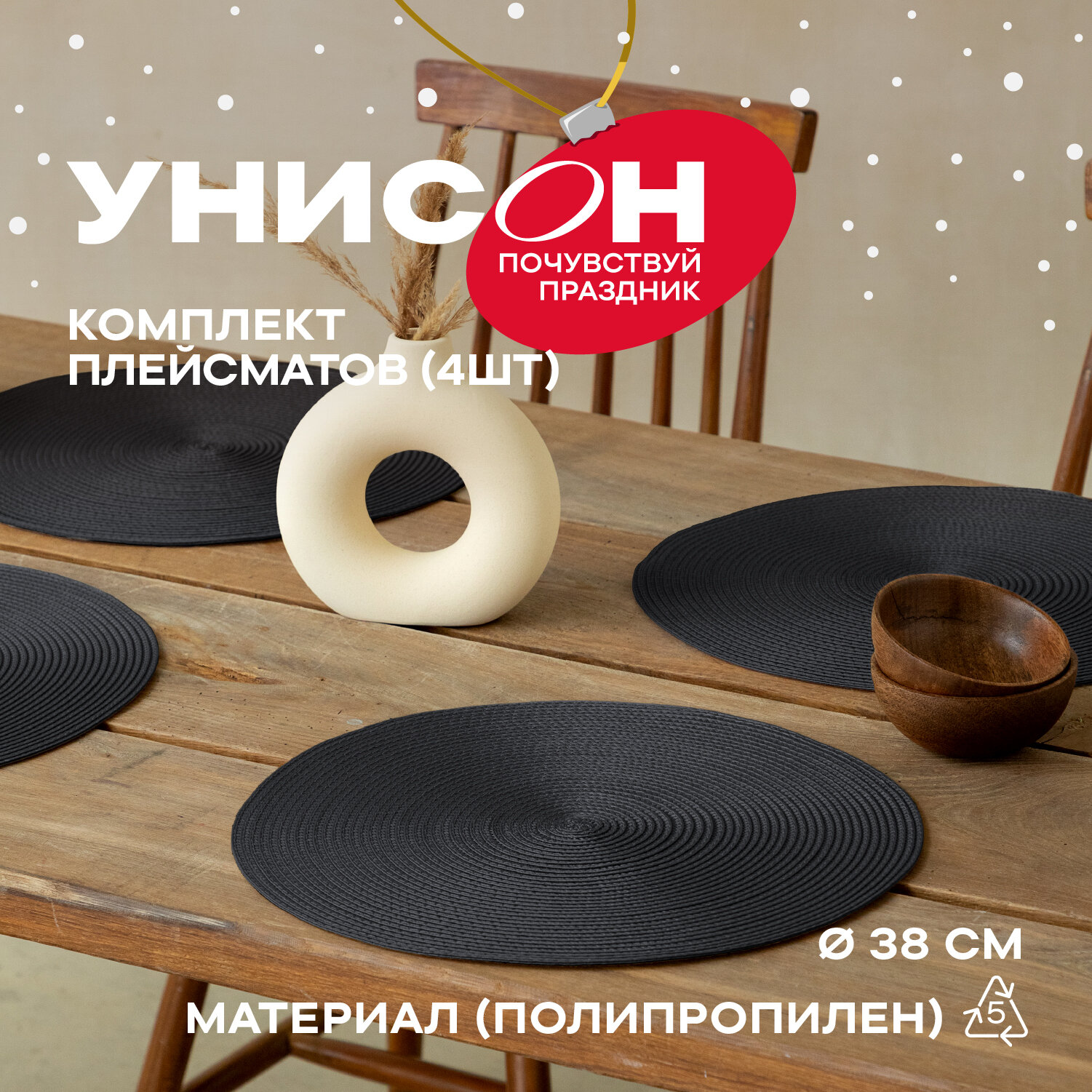 Отзывы на Комплект салфеток/ плейсматов /подставок плетеных круг D38 (4 шт.) "Унисон" черный
