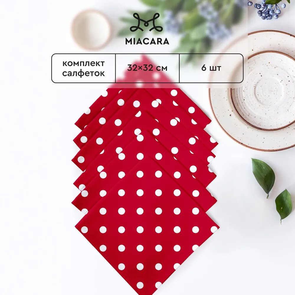 Комплект салфеток рогожка 32х32 (6 шт.) "Mia Cara" рис 30394-7 Горох красный информация: