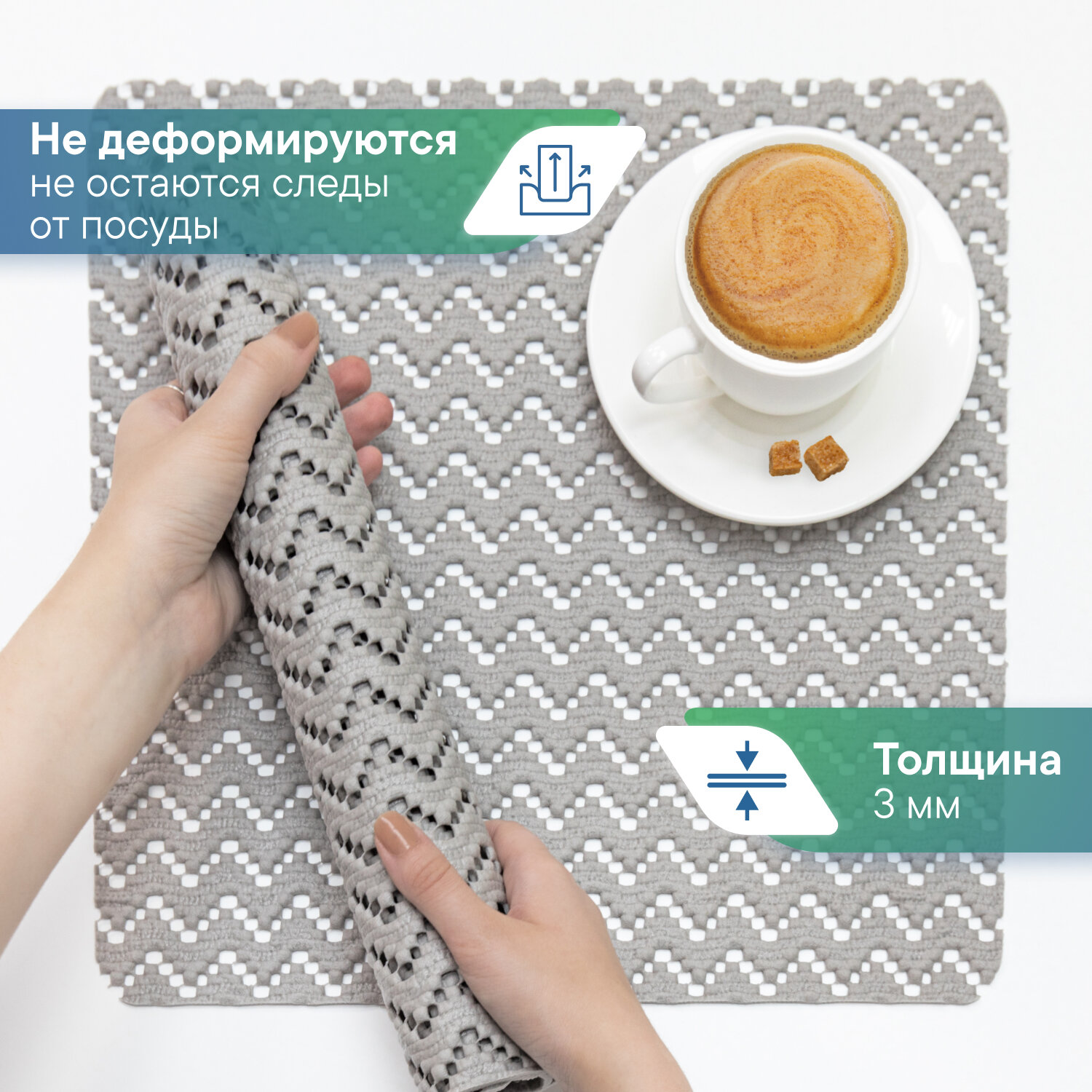 10 цен на Салфетки сервировочные на стол VILINA/ плейсматы для сервировки 2 шт 30х40 см из вспененного ПВХ серый зигзаг-1