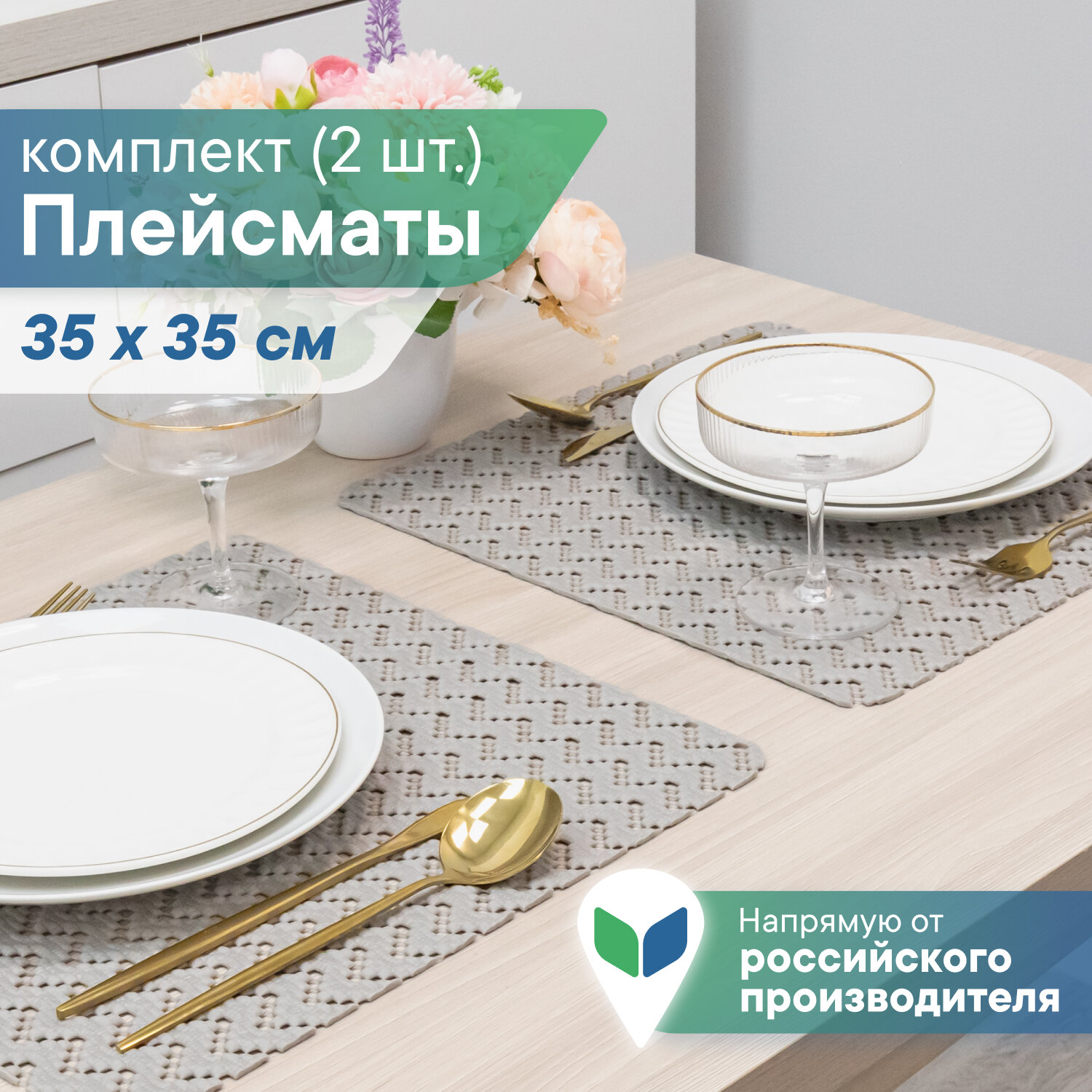 Салфетки сервировочные на стол/ плейсматы VILINA/ плейсмат для сервировки 2 шт 35х35 см из вспененного ПВХ серый 390 ₽