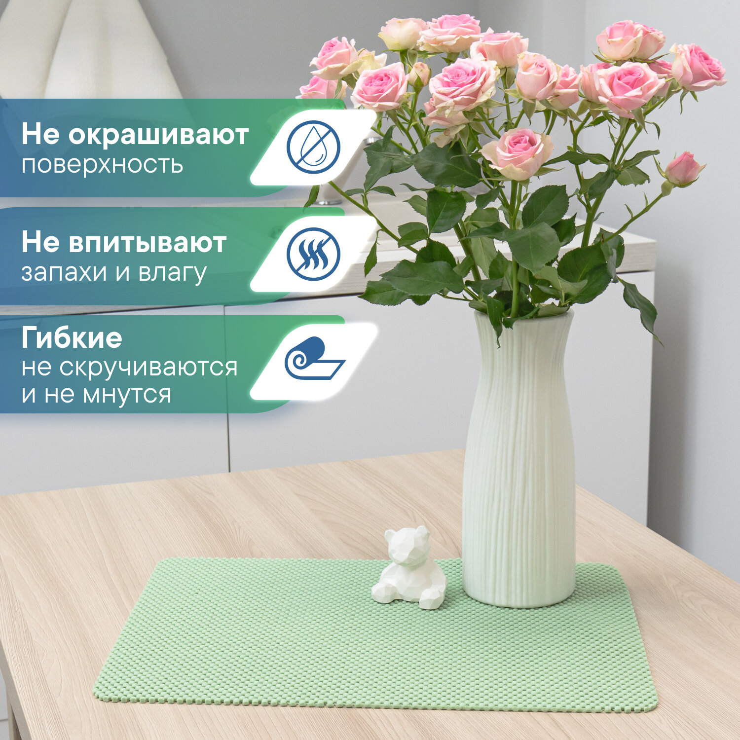 Салфетки сервировочные на стол/ плейсматы VILINA/ плейсмат для сервировки 2 шт 35х35 см из вспененного ПВХ фисташковый 390 ₽