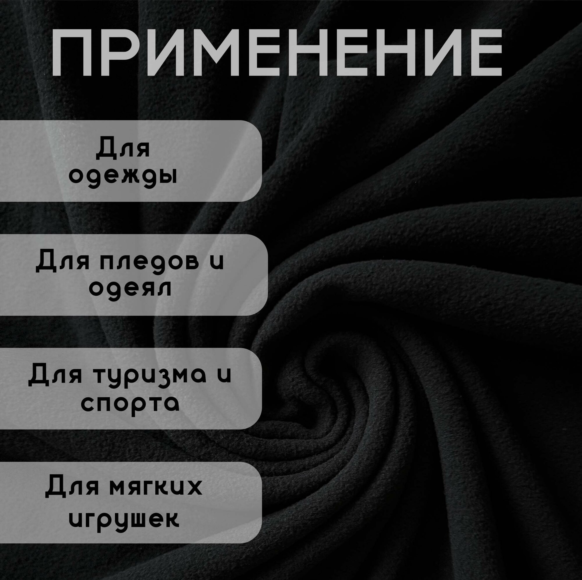 Ткань для шитья Флис Черный Двусторонний, отрез 5 м, ширина 150 см, плотность 190г/м2 информация: