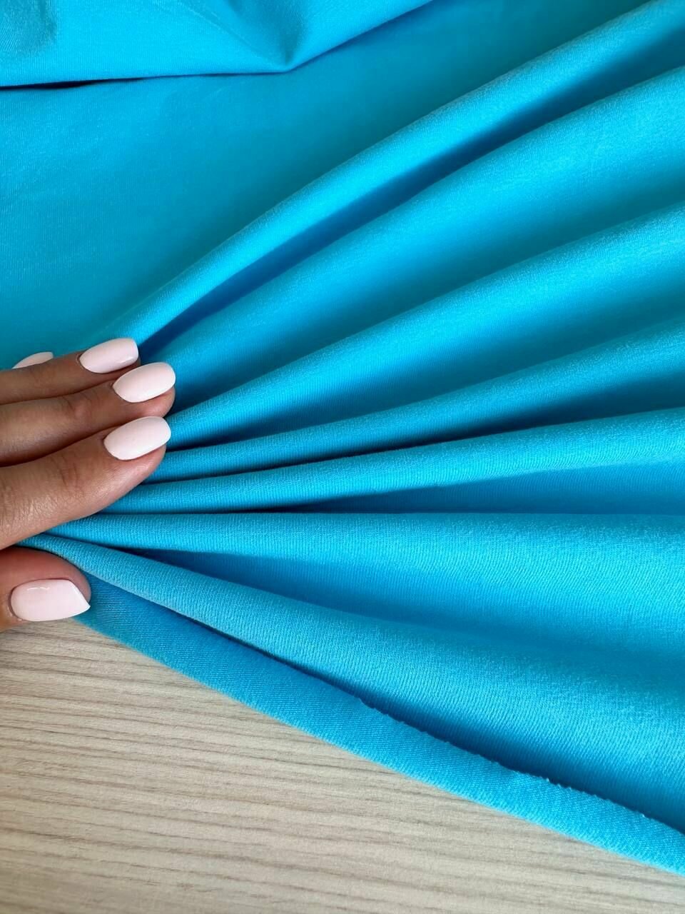 Отзывы на 0,5м. Кулирка ткань для шитья с велюровым эффектом. Цвет голубой. (отрез 50*190 см)