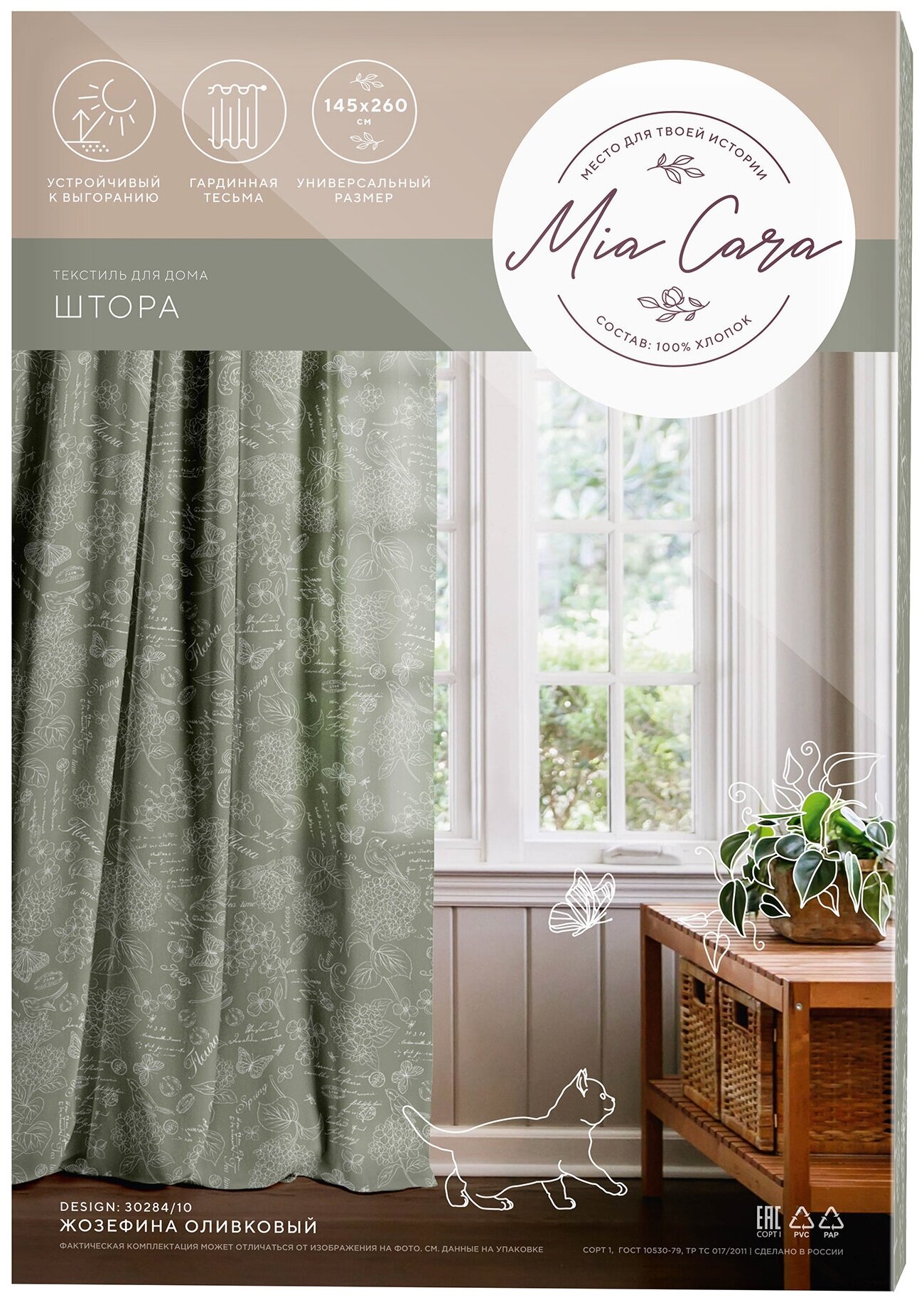 Отзывы на Штора рогожка 145х260 "Mia Cara" рис 30284-10 Жозефина оливковый