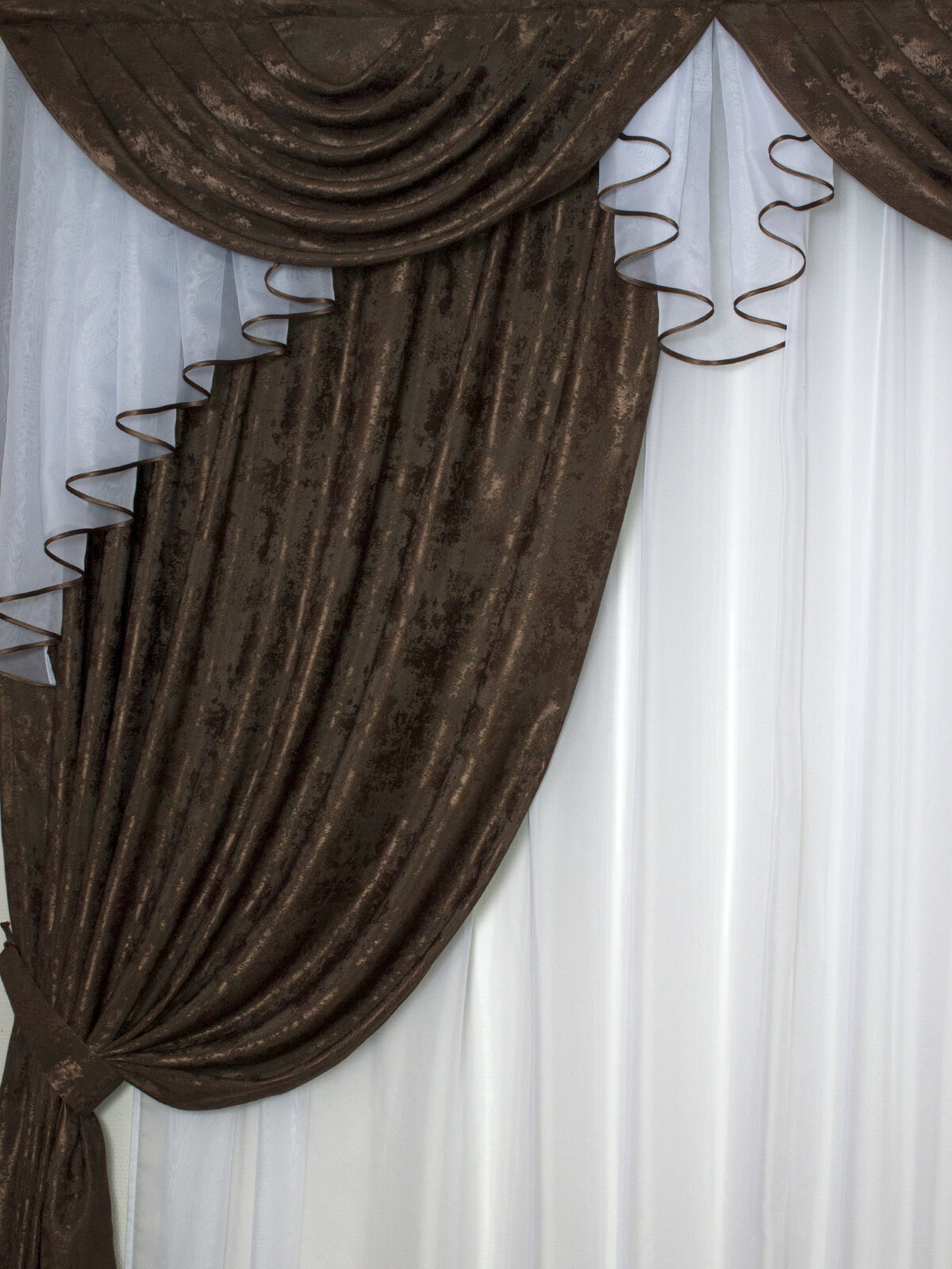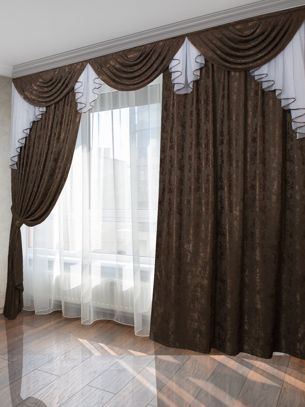 Шторы интерьерные с ламбрекеном и подхватами Графиня шоколад информация: