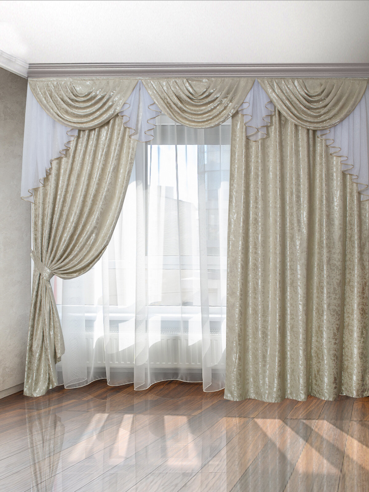 Шторы интерьерные с ламбрекеном и подхватами Графиня жемчужный информация: