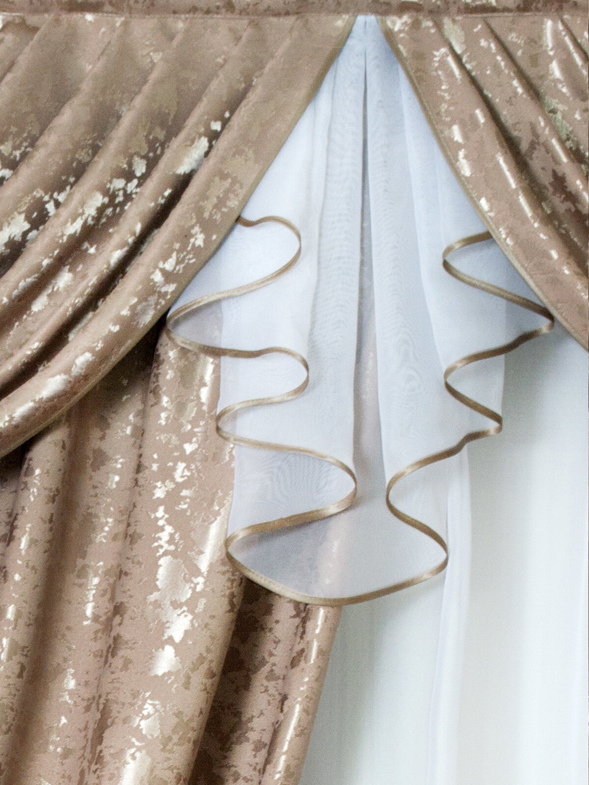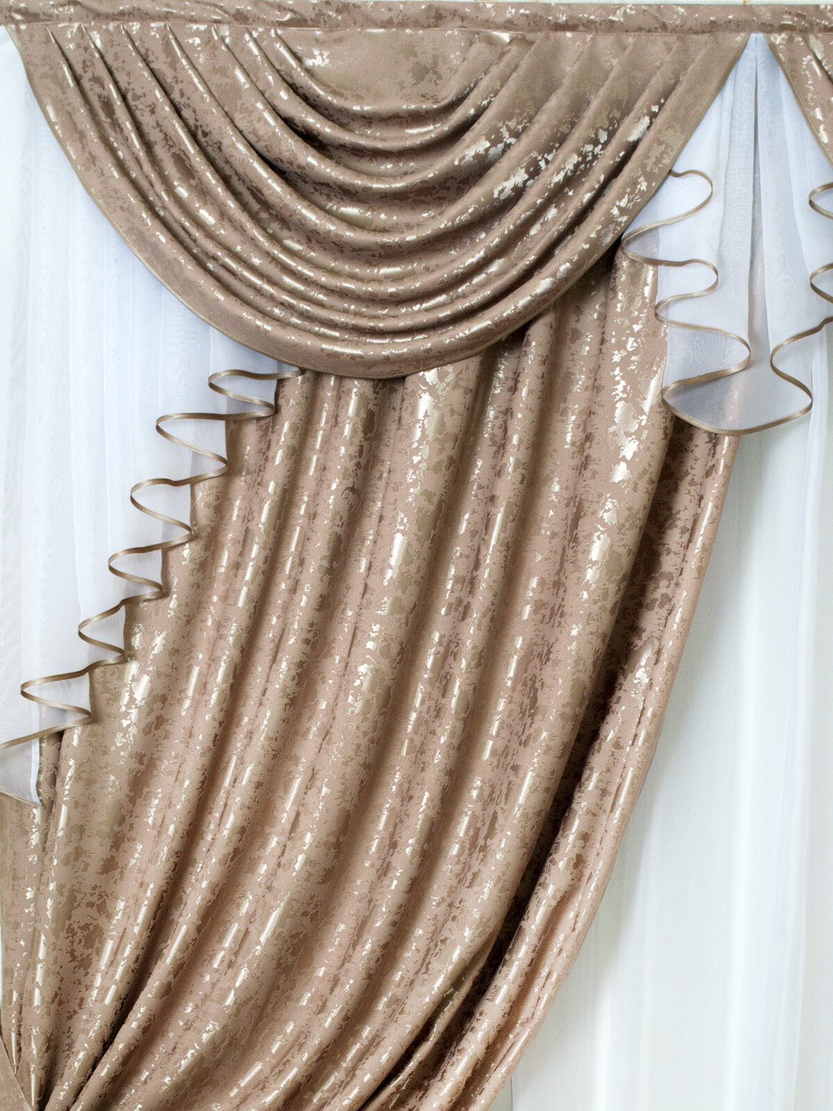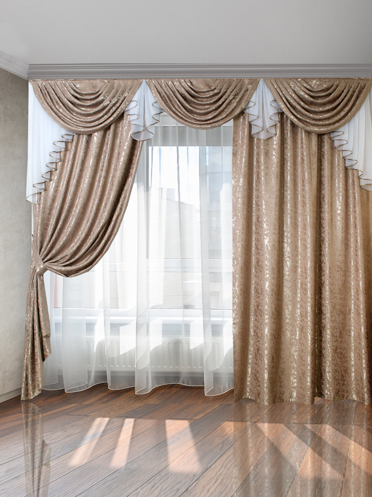 Шторы интерьерные с ламбрекеном и подхватами Графиня золотистая карамель информация: