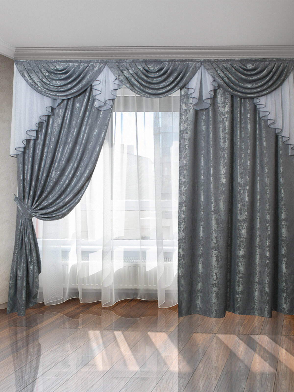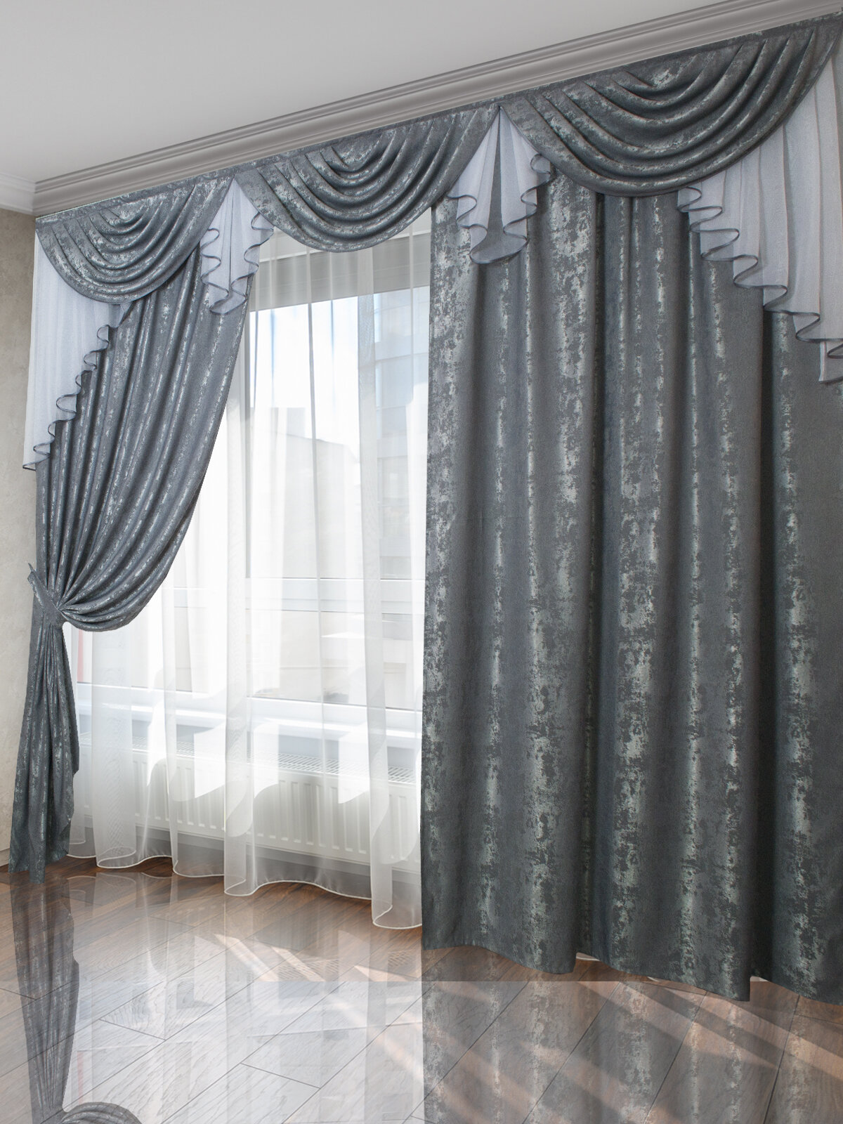 Шторы интерьерные с ламбрекеном и подхватами Графиня серые информация: