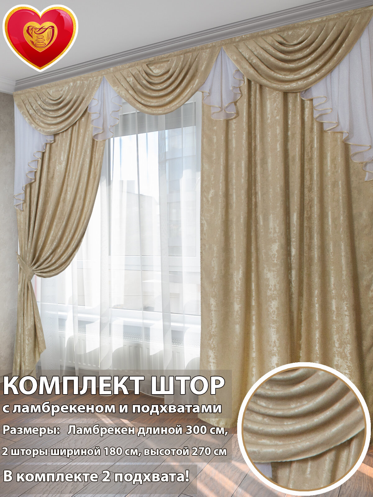 Шторы интерьерные с ламбрекеном и подхватами Графиня песочный 11 245 ₽