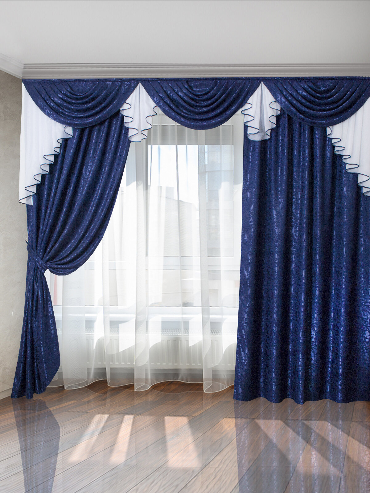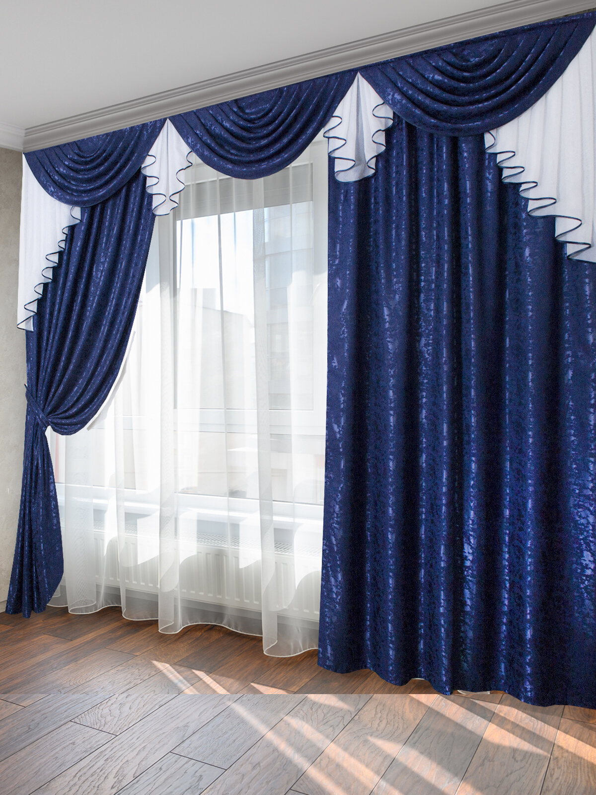 10 цен на Шторы интерьерные с ламбрекеном и подхватами Графиня сине-фиолетовый