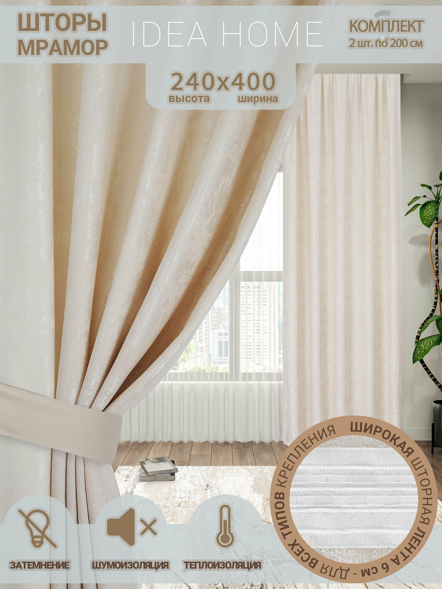 Портьера, Комплект штор IDEA HOME светозащитные для комнаты, кухни, спальни, гостиной и дачи 240х400см, бежевый мрамор 2 811 ₽