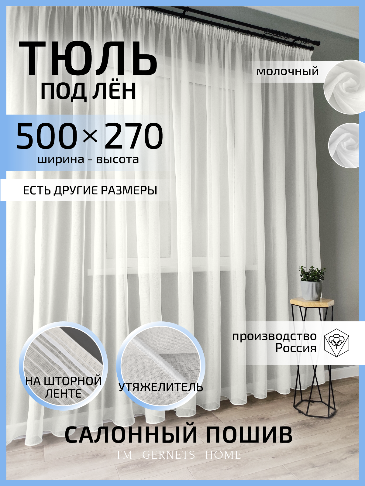 10 цен на Длинный тюль под лен 5х2,7 м, молочный