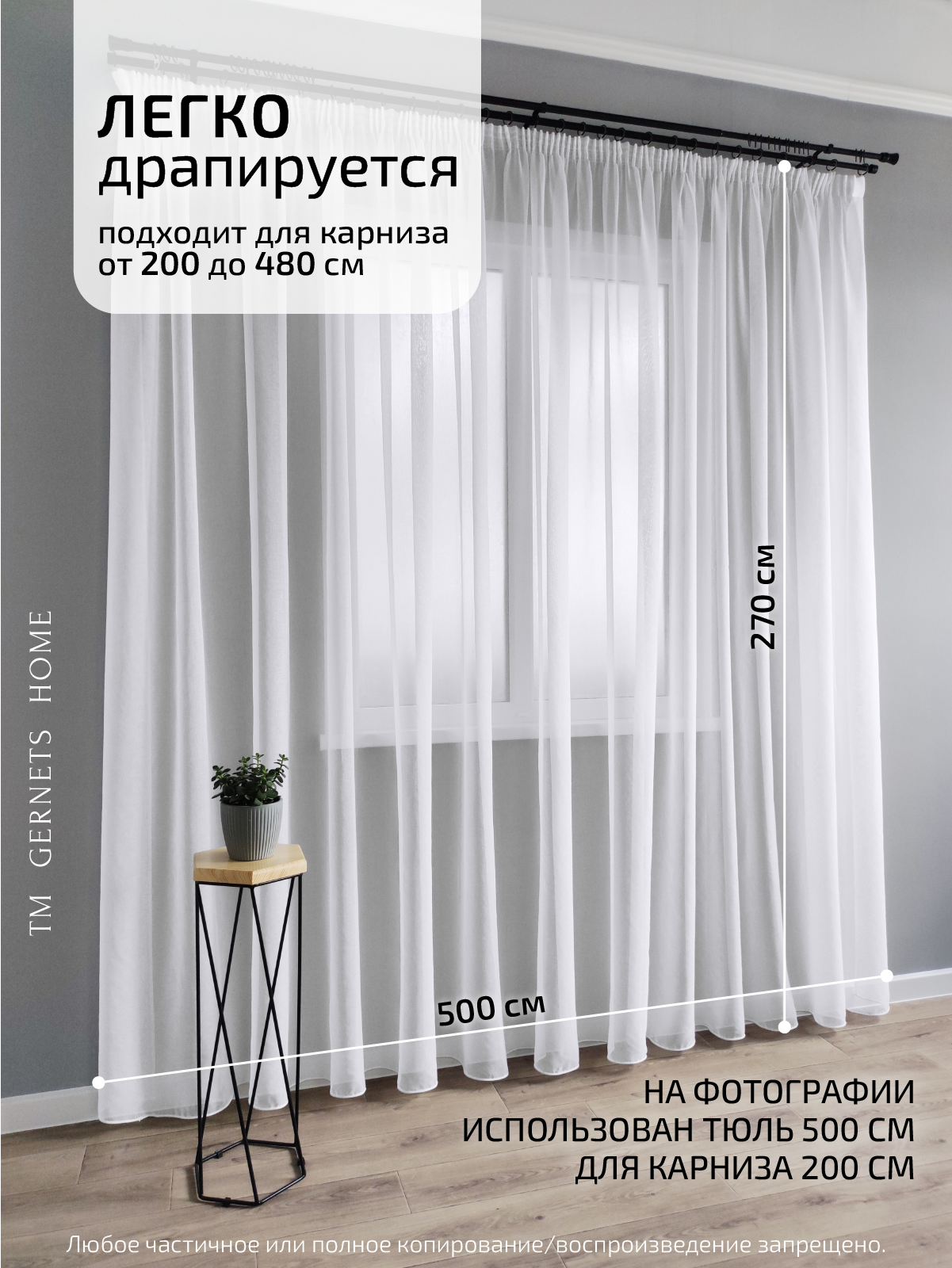 10 цен на Тюль для гостиной в современном стиле 5х2,7 м, белый с фактурой льна