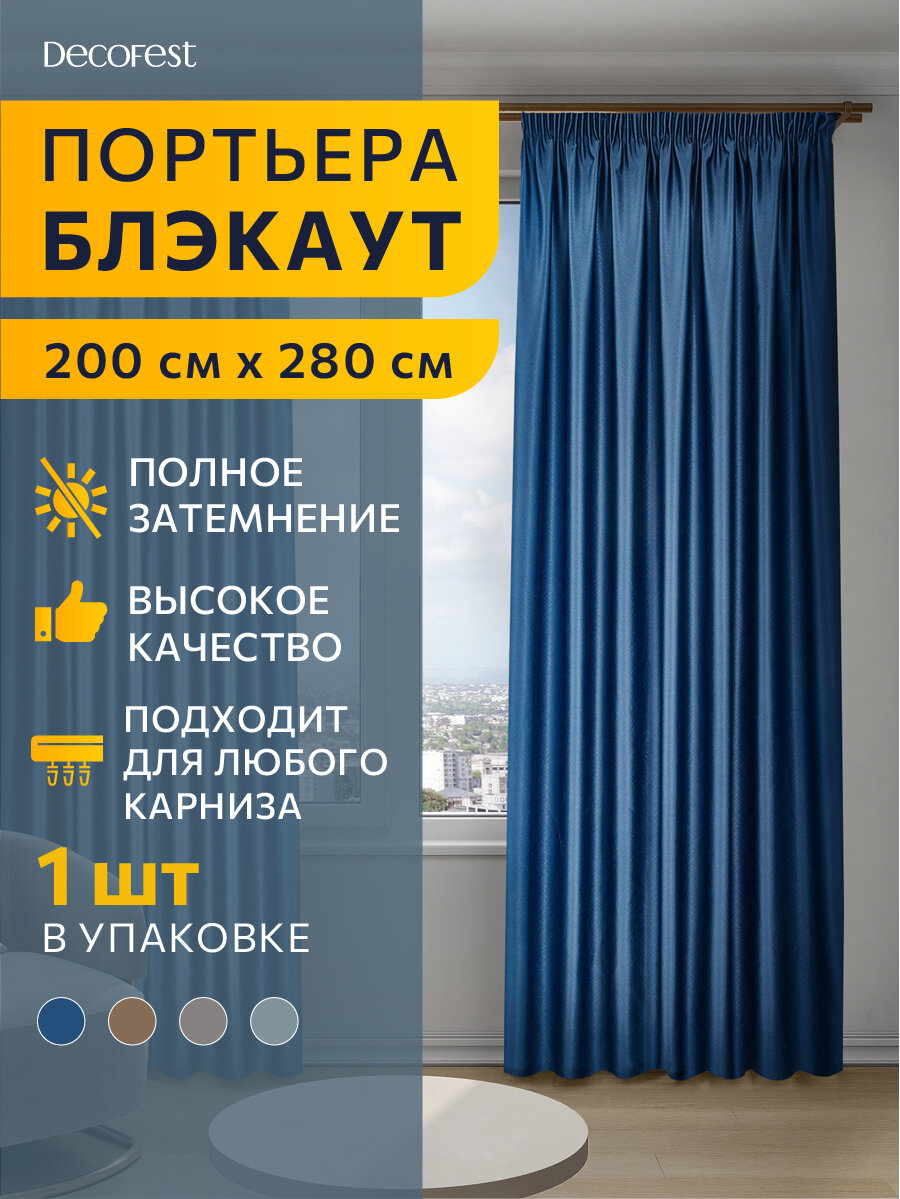 Штора портьерная блэкаут жаккард Тринити 200х280 цвет синий 3 719 ₽
