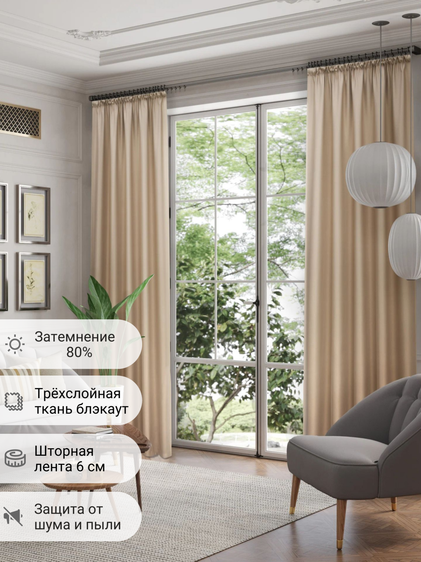 Отзывы на Шторы блэкаут бежевые на окна комплект 200x270 см - 2 штуки в комнату/для спальни/кухни/гостиной/детской