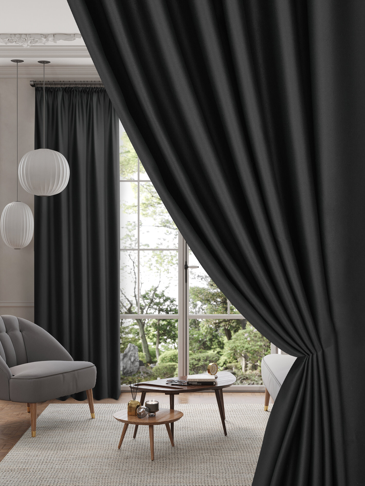 Шторы Adriana Alba, блэкаут, черный, комплект из 2 штор, высота 260 см, ширина 150 см, люверсная лента