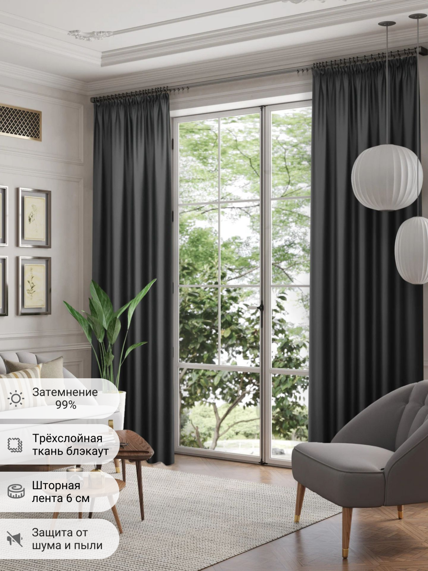 Шторы блэкаут черные на окна комплект 200x250 см- 2 штуки в комнату/для спальни/кухни/гостиной/детской информация: