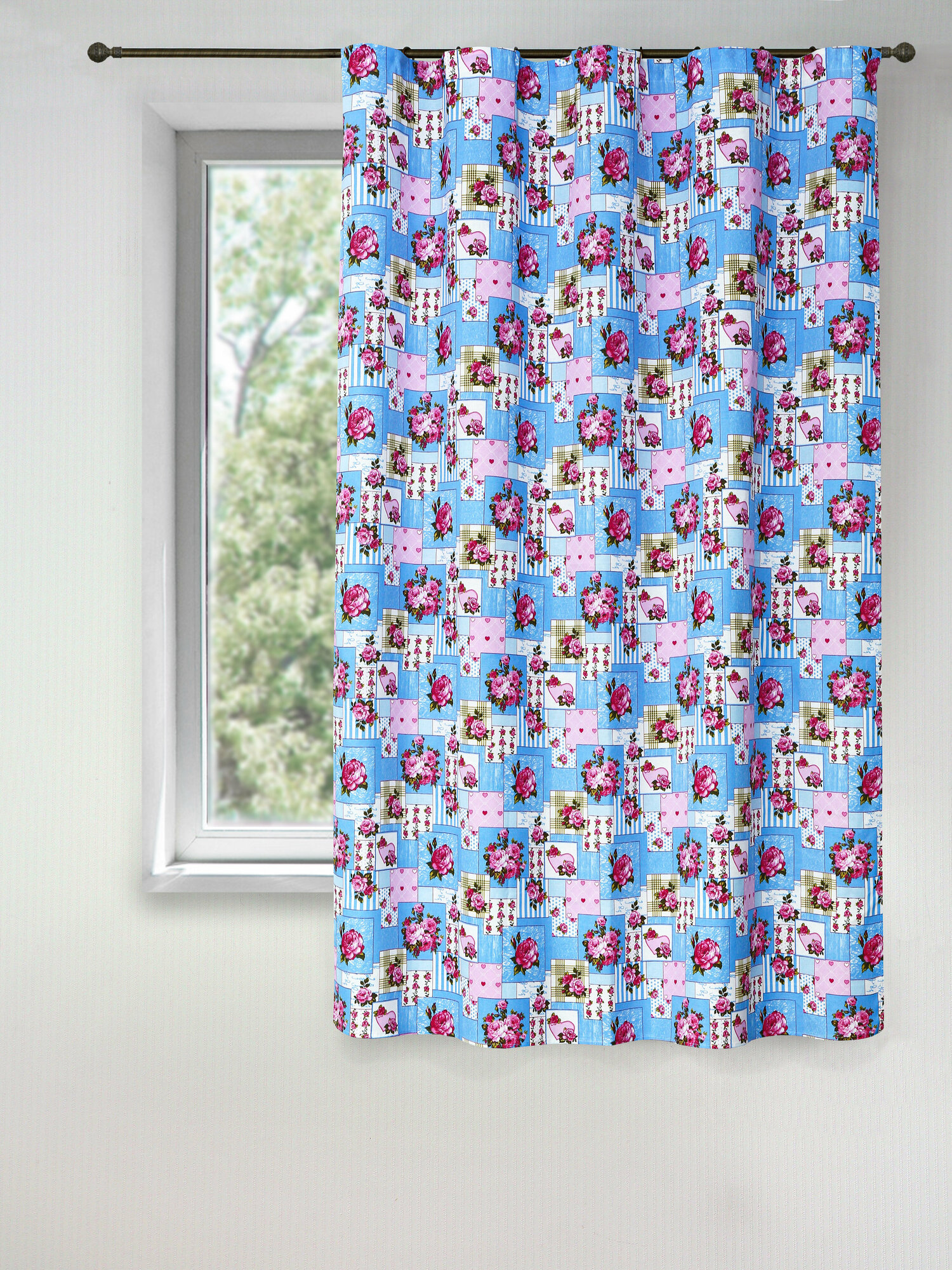 10 цен на Штора для кухни короткая с подхватом 150х180 см хлопок Розы на голубом