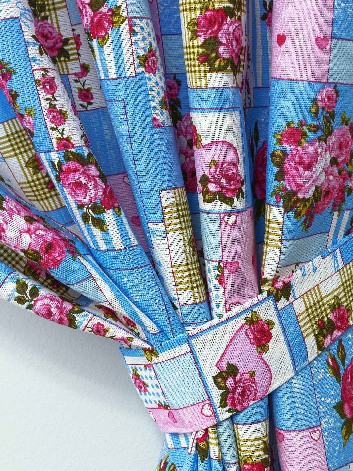 Отзывы на Штора для кухни короткая с подхватом 150х180 см хлопок Розы на голубом