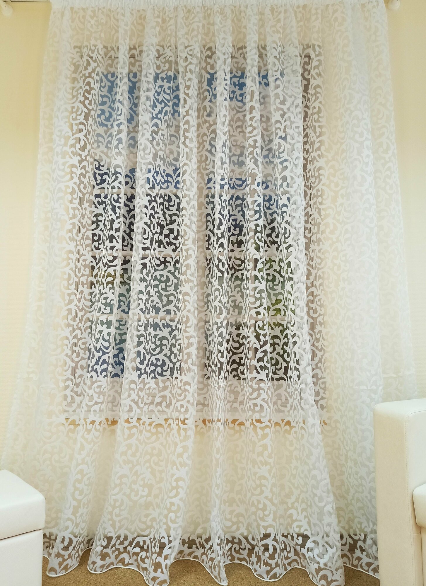 Отзывы на Тюль "Кружева" Узоры, высота 250 см, ширина 300 см, крепление - Лента, органза, белый