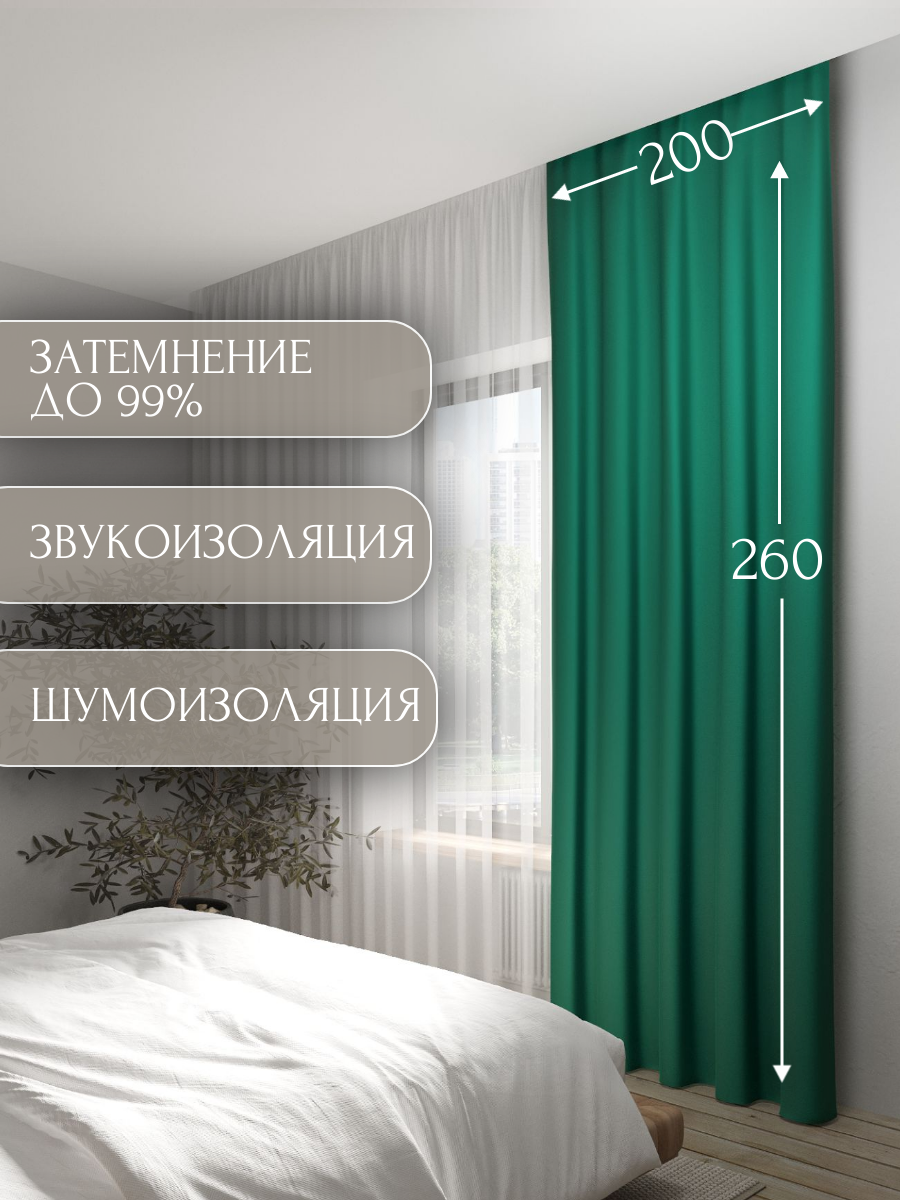 Комплект штор Блэкаут 2 шт. 200*260 см для гостиной, детской и спальни, изумрудный 4 235 ₽
