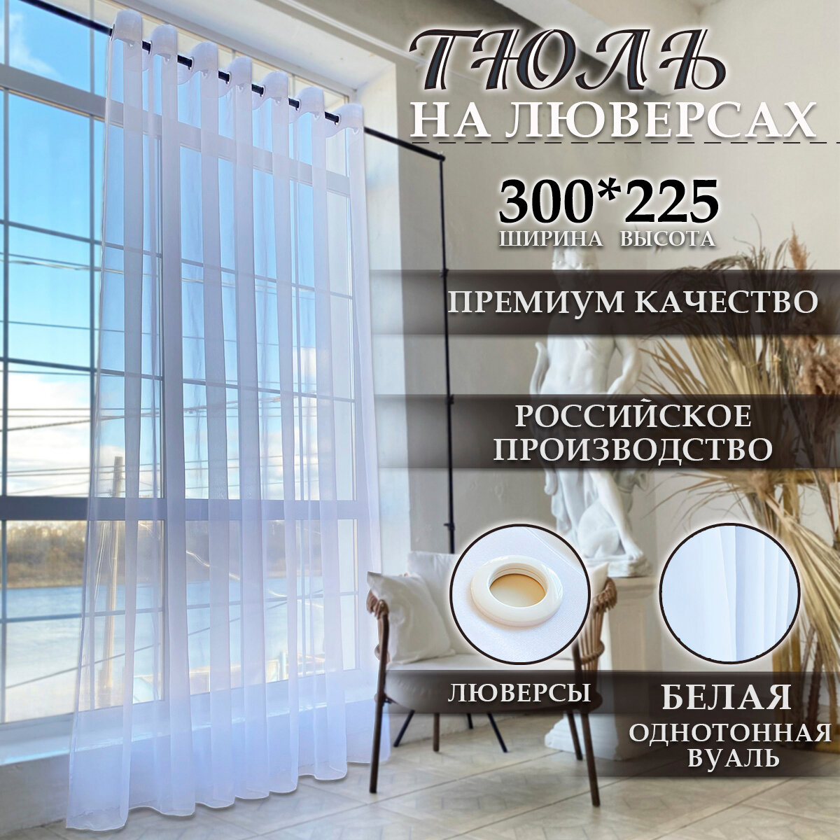 Тюль на люверсах, плотная вуаль, длинная с утяжелителем, 300 x 225 см информация: