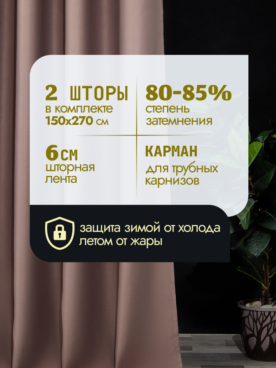 Шторы блэкаут для гостиной серо-коричневые 150х270 см (2 шт.) информация: