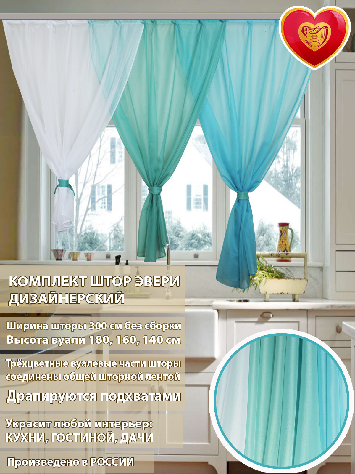 10 цен на Тюль из вуали короткая Эвери аквамариновый