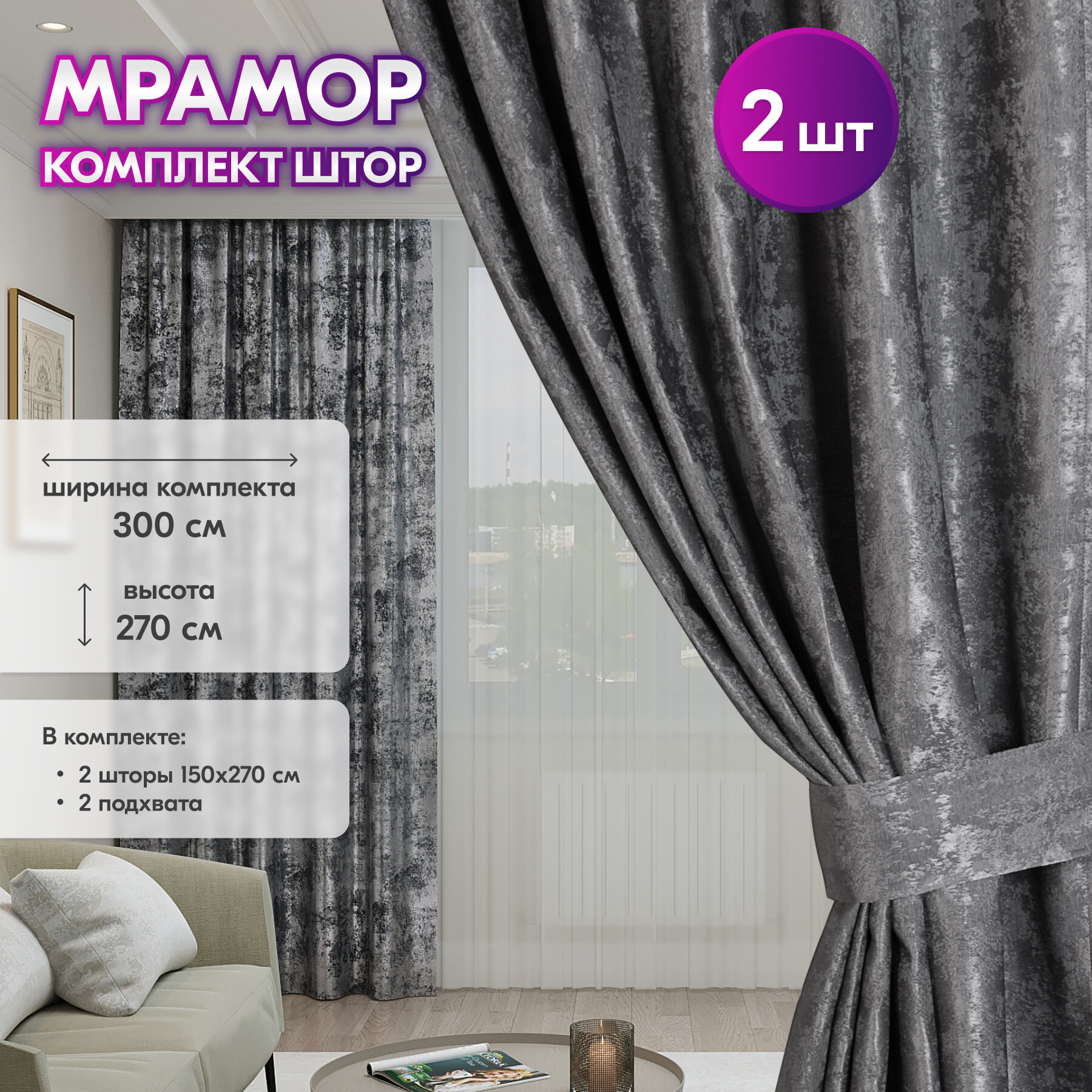 Комплект штор для гостиной Мрамор 150х270 см, с подхватами, темно-серый. 1 591 ₽