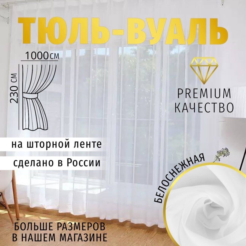 10 цен на Тюль Вуаль высота 230см Ширина 1000см, 1000х230, белая, для комнаты, кухни в гостиную, детскую, шторы