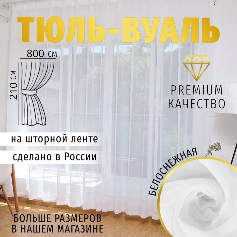 10 цен на Тюль Вуаль высота 210см Ширина 800см, 800х210, белая, для комнаты, кухни в гостиную, детскую, шторы