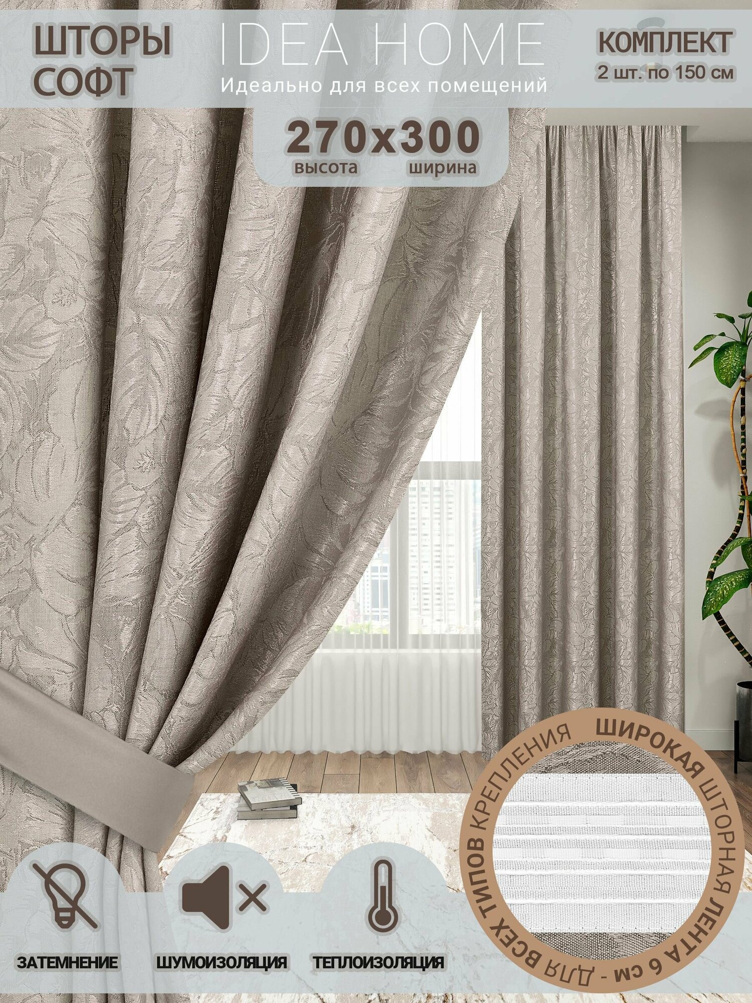 Комплект штор из 2 шт по 150 cм / IDEA HOME светозащитные для комнаты, кухни, спальни, гостиной и дачи 300*270 см , софт, бежевый информация: