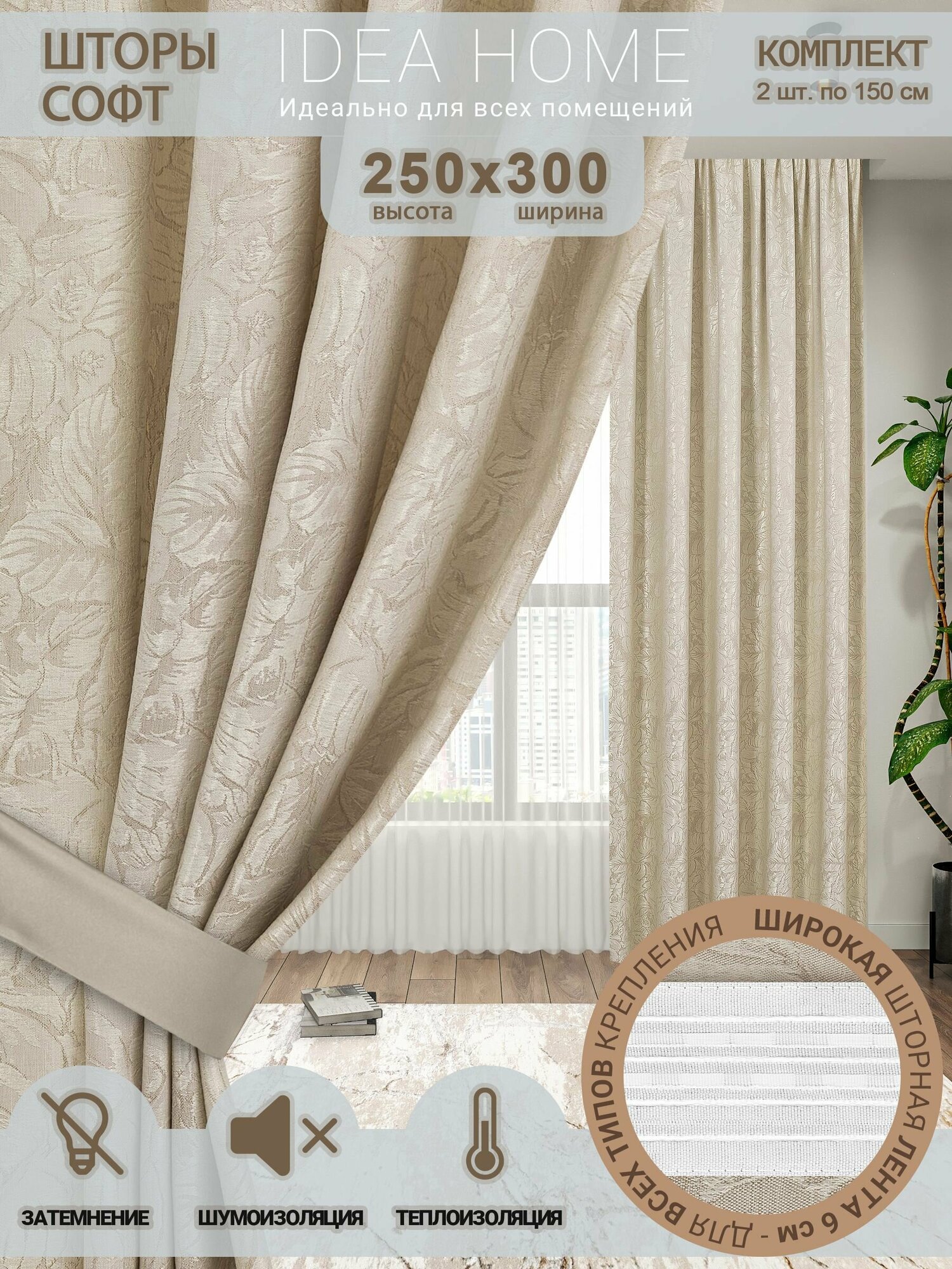 Комплект штор из 2 шт по 150 cм / IDEA HOME светозащитные для комнаты, кухни, спальни, гостиной и дачи 300*250 см , софт, бежевый 2 413 ₽
