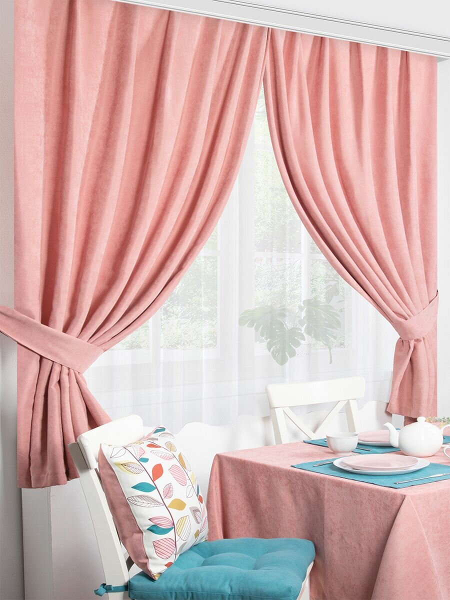 Отзывы на Шторы кухонные / комплект - 2 шт с подхватами / 136*180 см / ткань велюр / для кухни, дома, дачи / Пыльная роза / Altali