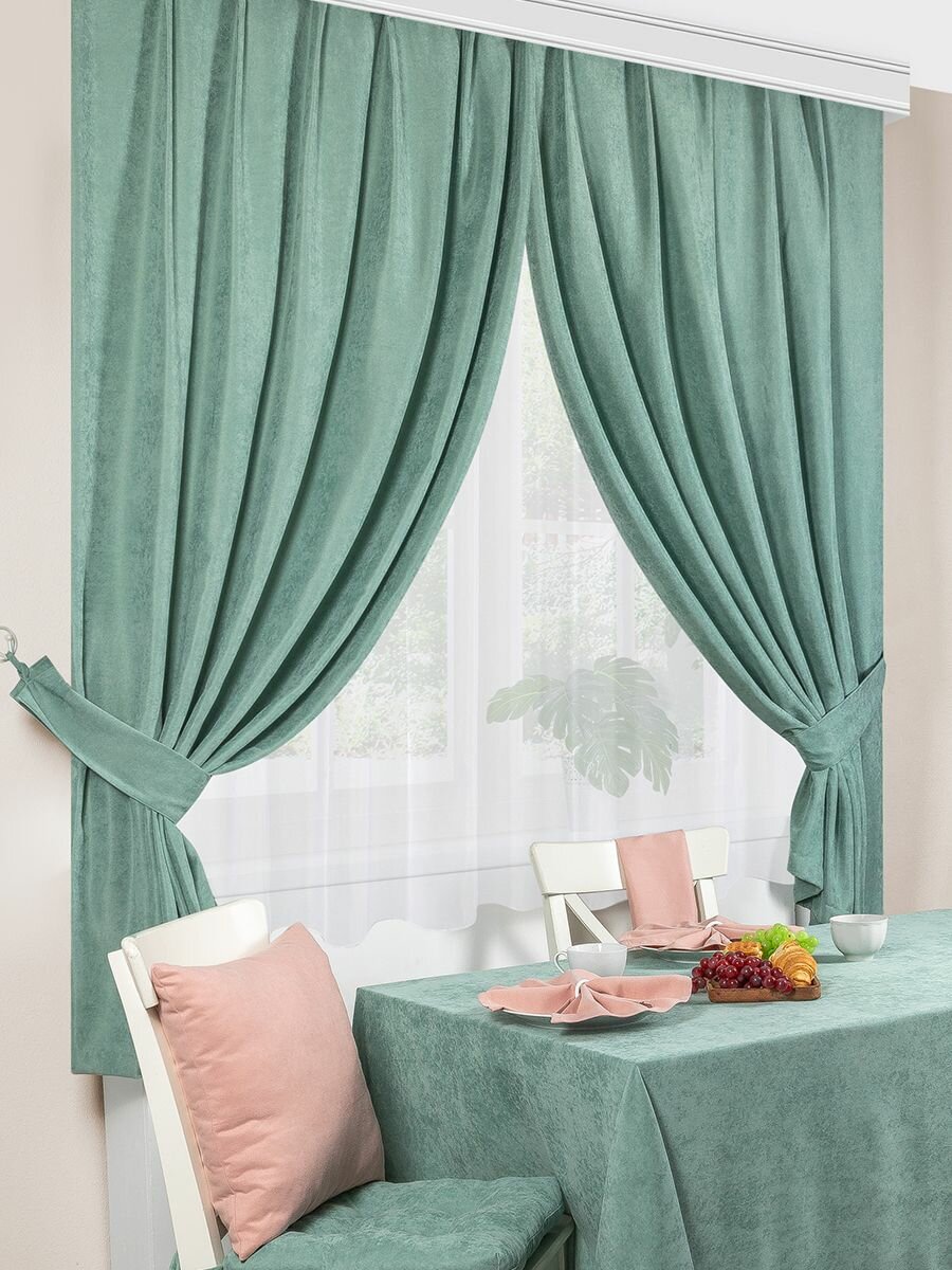 10 цен на Шторы кухонные / комплект - 2 шт с подхватами / 136*180 см / ткань велюр / для кухни, дома, дачи / Платан / Altali