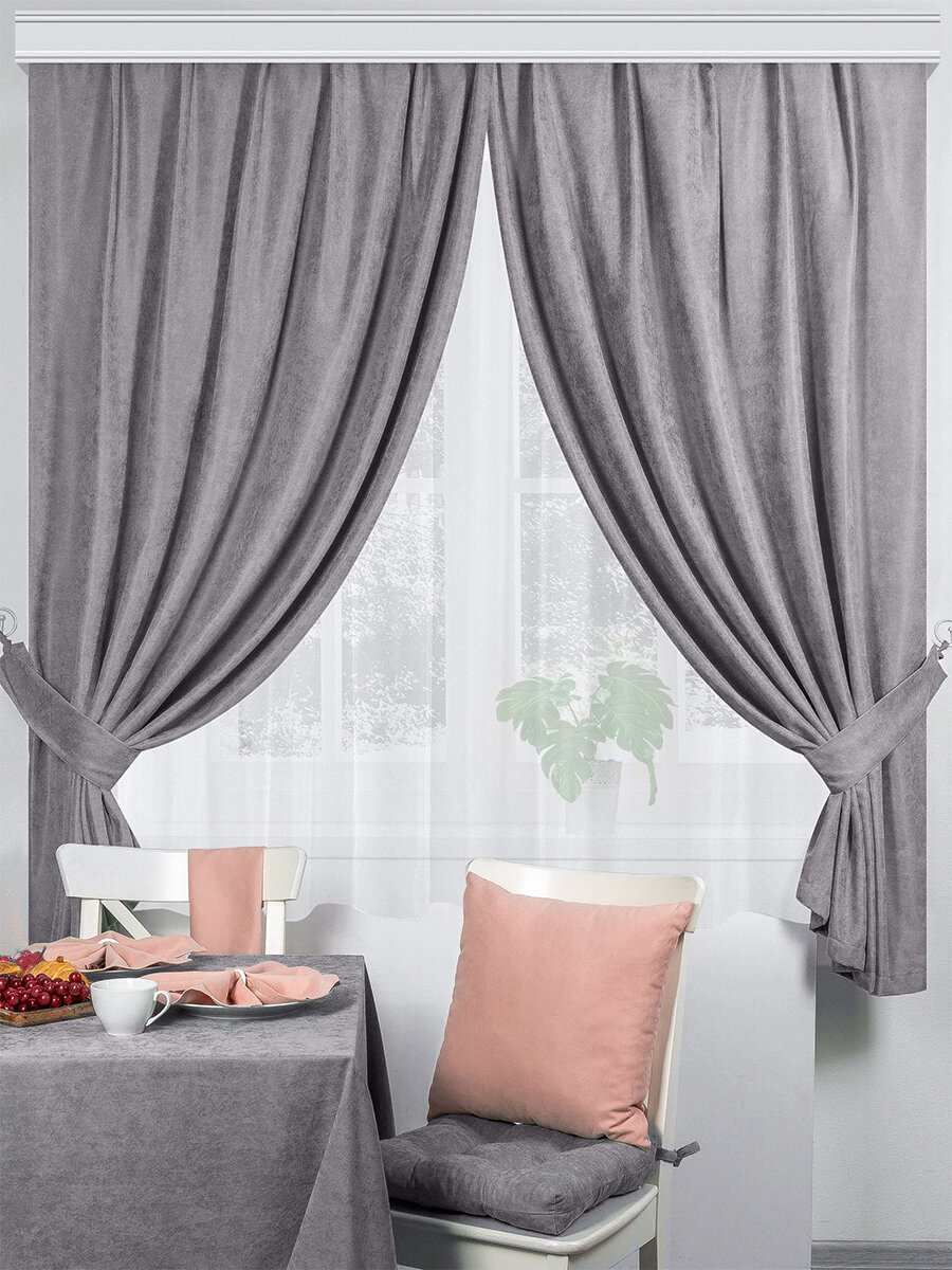 Шторы кухонные / комплект - 2 шт с подхватами / 136*180 см / ткань велюр / для кухни, дома, дачи / Пыльная роза / Altali 2 738 ₽